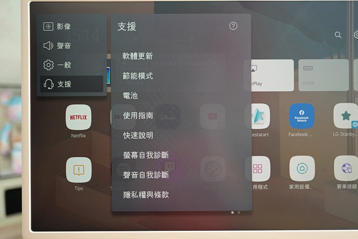 比較特別的就是與一般LG電視不同的觸控設定,可以選擇邊緣手勢模式還是多點觸控模式,就看使用者的使用習慣來調整。