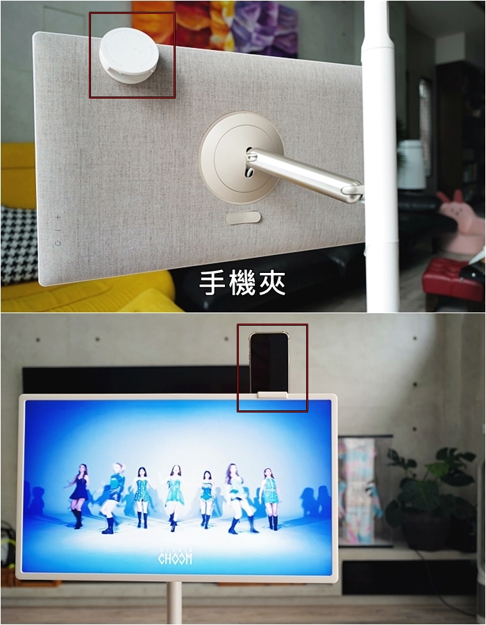 手機夾也很實用,對於直播或是視訊的應用相當方便,像我們家都已經習慣手機開靜音,以前都怕突然想起的手機鈴聲打擾到小孩的睡眠,常常漏接很多電話,現在直接夾在螢幕上方,追韓劇的時候即使有電話進來也可以馬上得知。