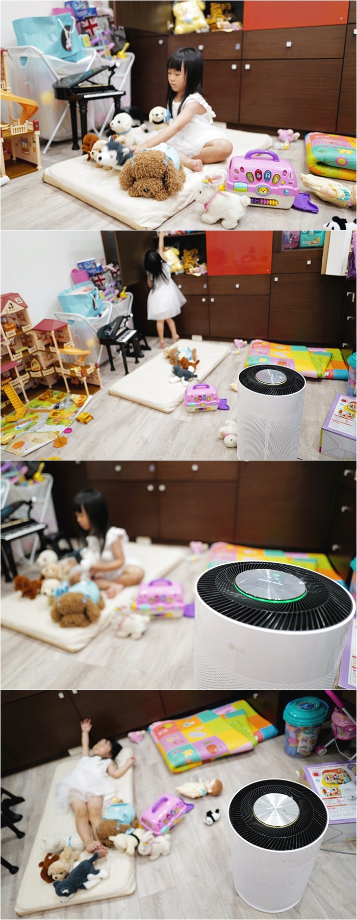 Cola的遊戲室也是有固定一台空氣清淨機,因為她的遊戲室最多的就是絨毛娃娃,家裡的絨毛娃娃大概超過百隻,絨毛娃娃很容易推積灰塵,所以放在遊戲室的作用也相當大,常常翻箱倒櫃的拿玩具出來,肉眼都可以看到翻箱倒櫃的時候有灰塵飛散出來了,但是瞬間就會被 超淨化大白空氣清淨機-Hit一吸而盡。 |