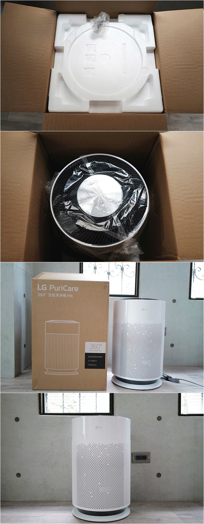 同樣步驟開香跟大家分享一下,LG目前的空氣清淨機幾乎都是圓柱形的,主打的是360度無死角的進氣口,這一台 超淨化大白空氣清淨機-Hit同樣也是維持一次的造型,在功能上跟重量上也做了一些改變,更迎合目前主流需求市場。