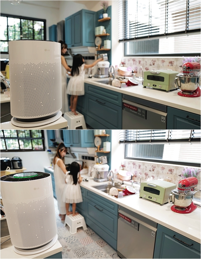 家裏面的廚房除了平常的炒菜煮飯以外,太妃也常常做麵粉類的材料製作,不管是烘培打麵麵粉四處飛散或是烤牛排的氣味都會吸附在廚房每個角落, 超淨化大白空氣清淨機-Hit就可以有效淨化氣味。 |