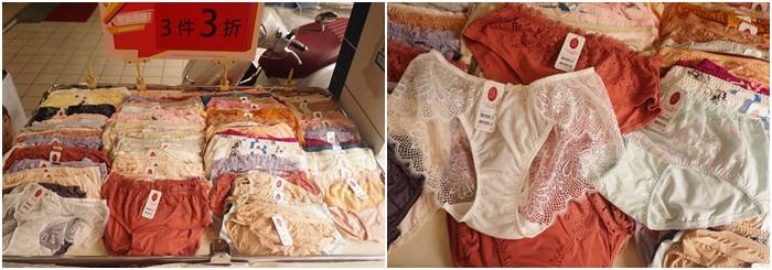 內褲其實算是消耗品,強烈建議大家每幾個月就換一次,穿起來比較健康呢!這一區的小褲CP值超高,尺寸也都很齊,也都貼心分類尺碼,可以搭配成套也可以混搭或是單買,現場的銷售小姐都很熱心,有需要幫忙搭配成套可以直接跟她們說,因為他們找會速度快很多。