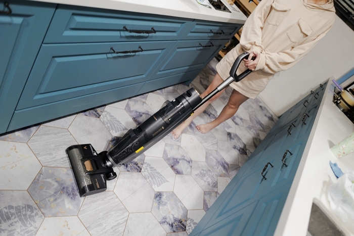 我們家的廚房區域滿大的,以前用掃地機器人加上拖地機器人都很難清理乾淨,廚房內湯湯水水的加上油煙薰陶下的地板真的不好清理,一直以來也是我們的苦惱,現在有了這一台雲米智能無線洗地機Cyber確實大大幫助我們許多,拖起來非常輕鬆,且可以明顯感受到地上的清潔度乾淨許多,光腳踩在上面就可以明顯感受到。 |