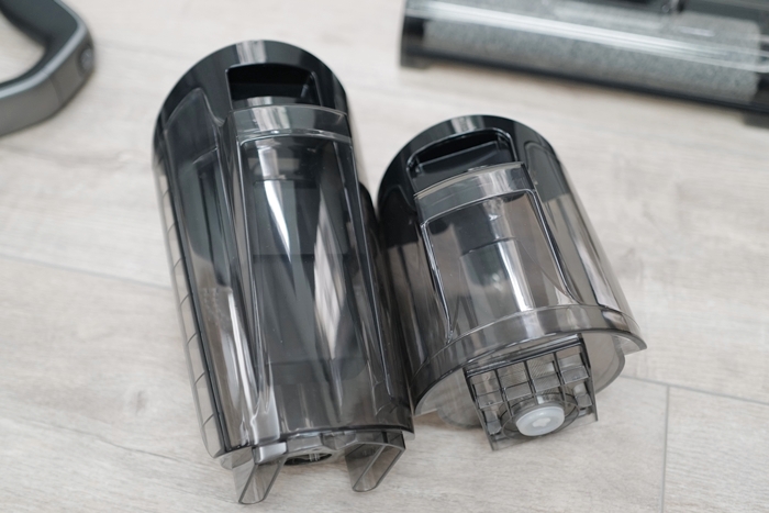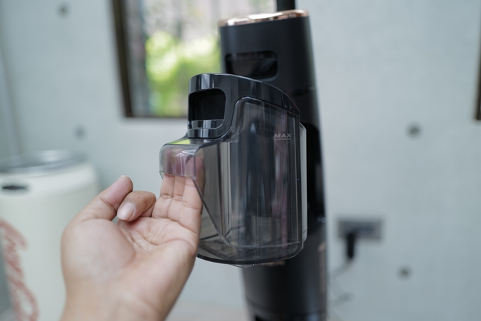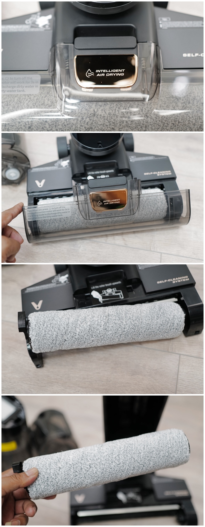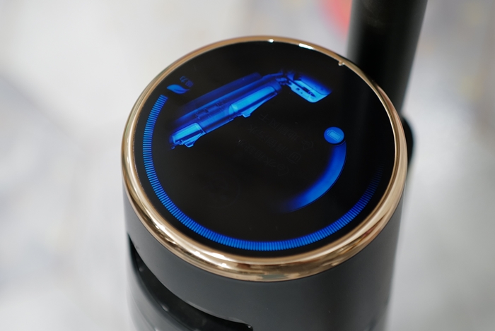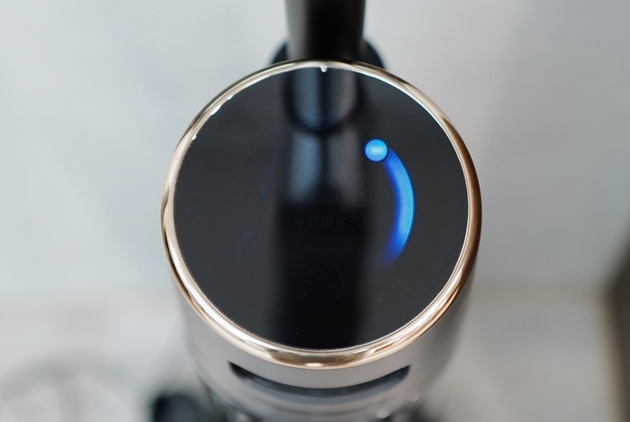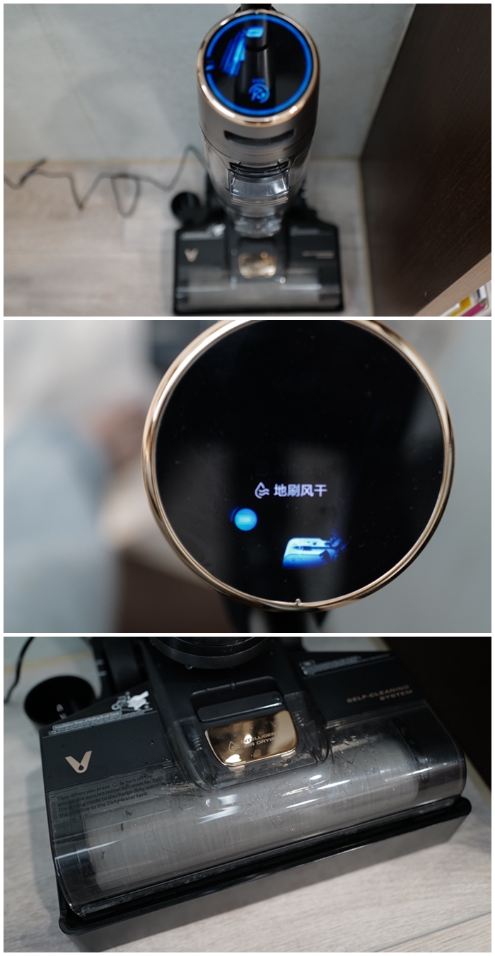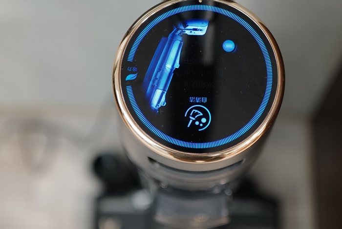 放回底座並按下自清潔的按鍵,就會開啟自體清潔的功能將滾輪刷洗乾淨,這個真的非常方便,省去每次清潔完還要拔起來清潔整理,久久一次想要取下來深度清潔也沒問題。 |