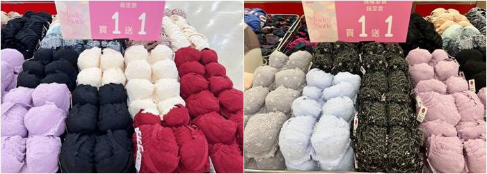 內衣單件490元的價格超值到不入手對不起自己,一整排的花車真的不誇張,款式真的超多備貨超齊全,這一區的內衣大多是零碼內衣居多,都是很好看的款式,很適合喜歡挖寶的女性朋友,這價位真的很划算,買多也不傷荷包。 |