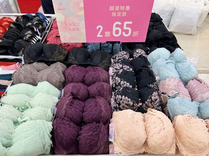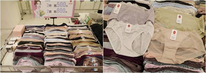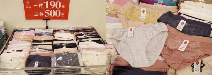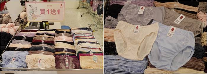 這區與零碼內衣可成套搭配,內褲其實算是消耗品,強烈建議大家每幾個月就換一次,穿起來比較健康呢!這一區的小褲CP值超高,尺寸也都很齊,也都貼心分類尺碼,可以搭配成套也可以混搭或是單買,現場的銷售小姐都很熱心,有需要幫忙搭配成套可以直接跟她們說,因為他們找會速度快很多。