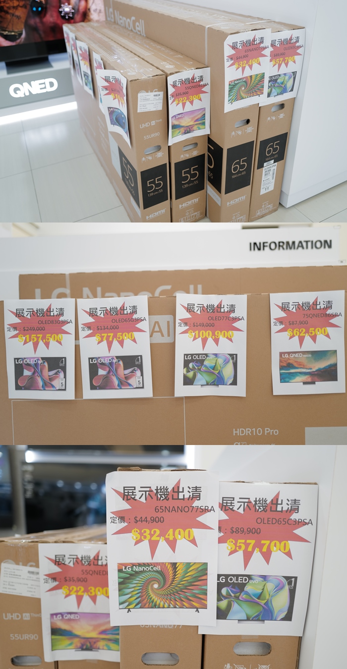 現場也會有不定期的福利品、拆封品可以撿便宜,超多高規格的電視一整個下殺的額度真的超大,一整個殺很大。 |