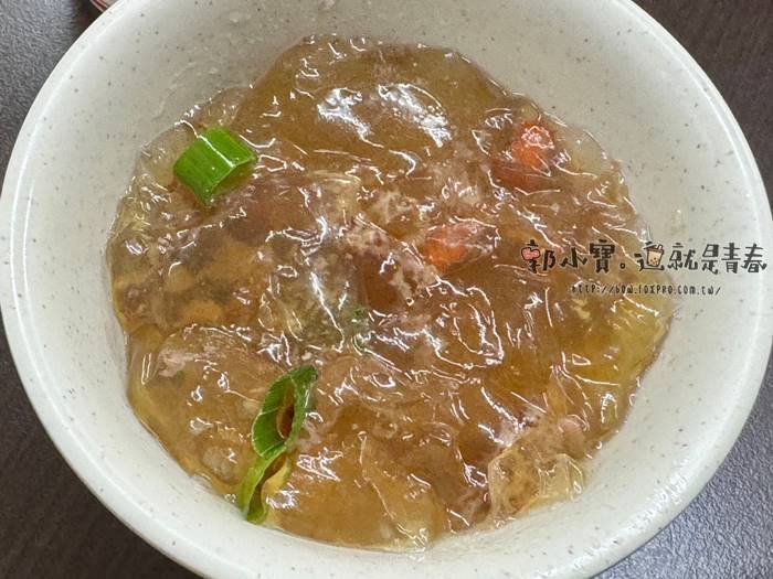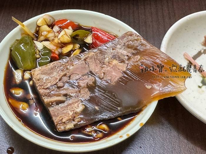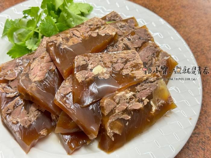 | 同樣是很多人推薦的凍牛肉,凍皮同樣很濃郁,鹹度比較高一點,搭配辣椒醬油很適合我這種重口味的人,皮凍跟碎牛肉的比例各一,所以口感上也很討喜。 |