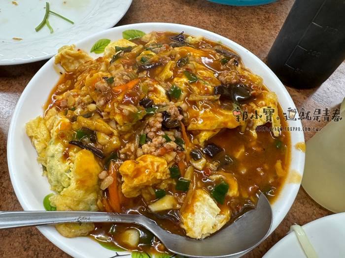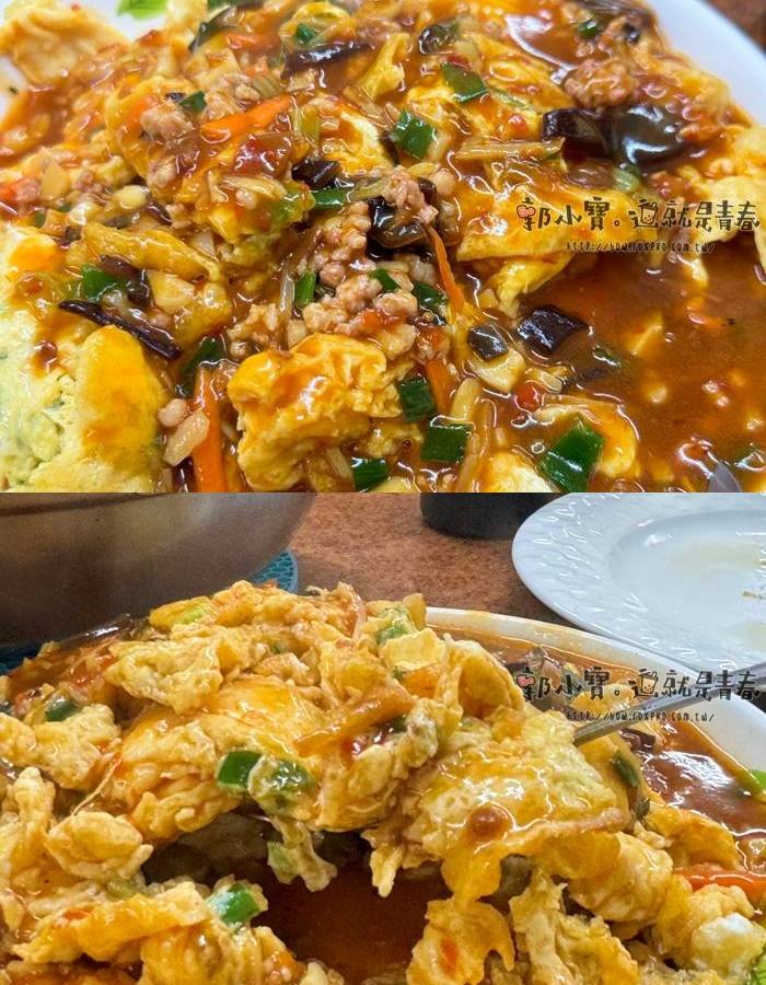 到底有多少蛋料理我也忘了,蔥花蛋普通很多,當下只知道先夾魚香烘蛋。 |