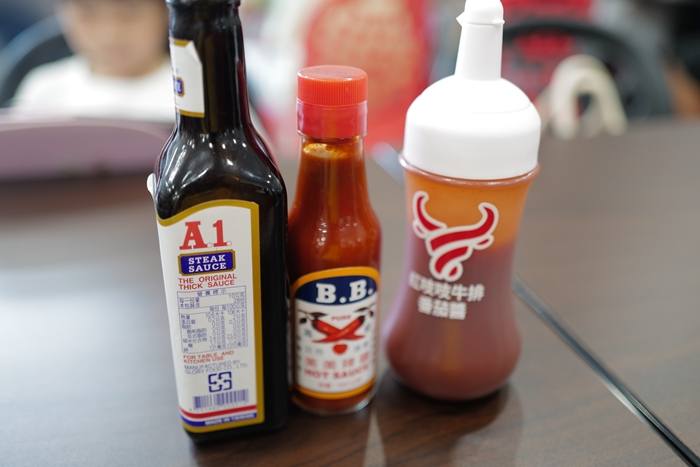 | 牛排醬則是提供bb辣醬、A1牛排醬跟番茄醬,對我來說有BB辣醬就及格了。 |