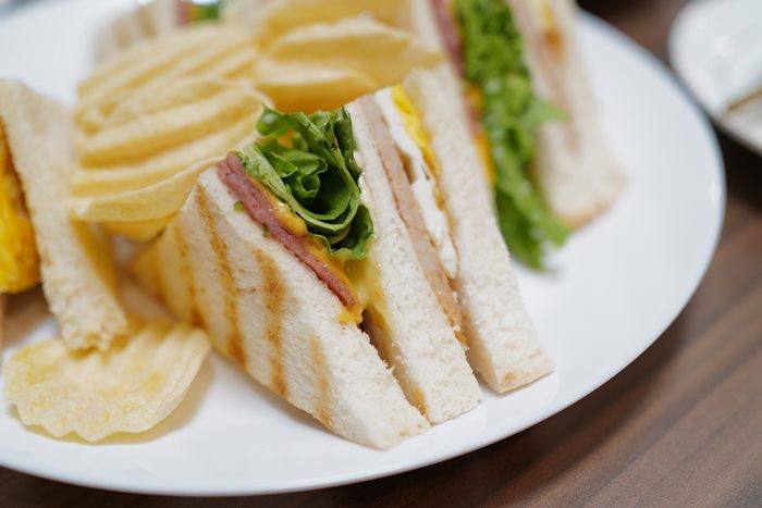 | 總匯三明治的份量充足,且食材都很新鮮,生菜都非常的翠綠水分又多,吐司烤的恰到好處,一口咬下非常滿足。 |