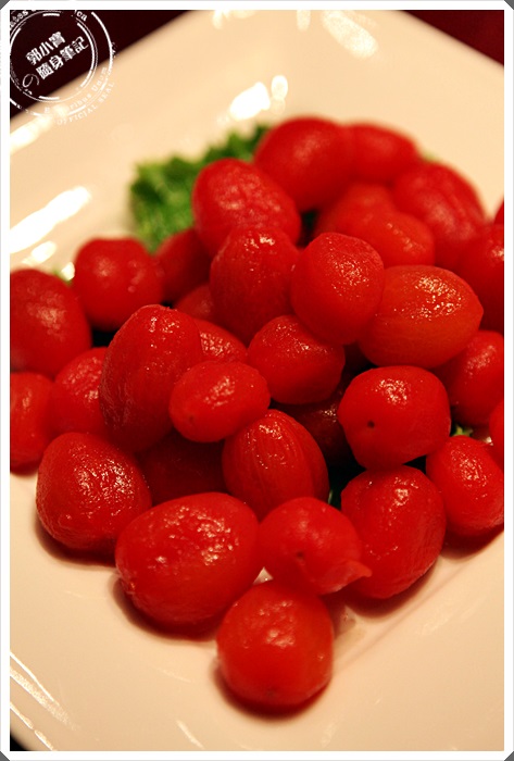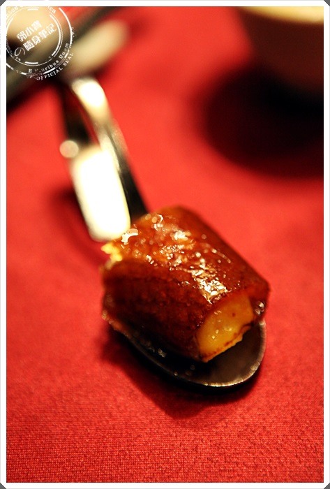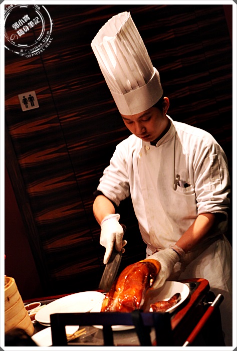 吃到一半的時候,廚師就把紅樓最知名的霸王櫻桃鴨用推車推進來了,難怪會被稱為霸王櫻桃鴨,這隻櫻桃鴨比其他的正常櫻桃鴨還要大隻一點。 |