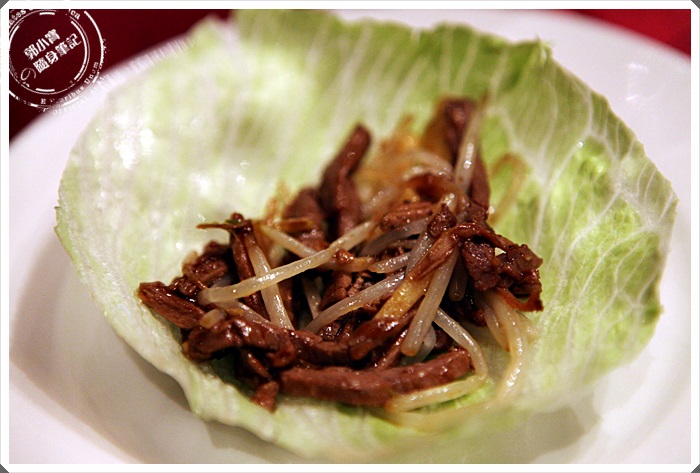 調味炒過的鴨肉絲,生菜內包裹著豆芽菜跟鴨肉絲,入口後生菜爽口水份極多,內搭著鴨絲的濃郁口味,著實特別。 |
