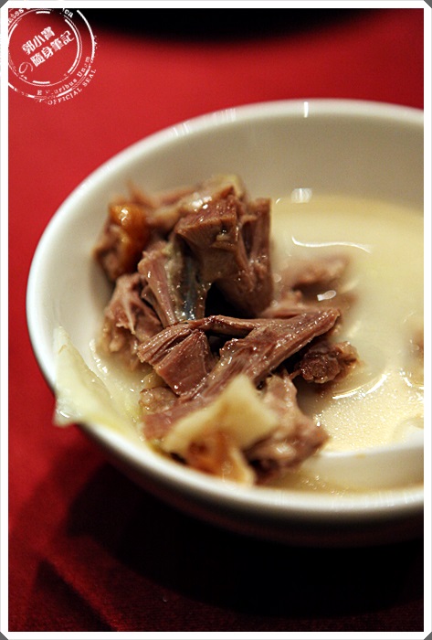 這碗湯也是櫻桃鴨多吃的其中一個重點,喝起來相當的甘醇濃郁,真的頗為鮮美,湯頭的顏色呈現出乳白色,味道燉的相當的透。 |