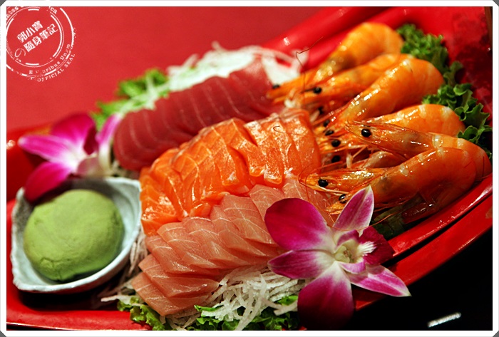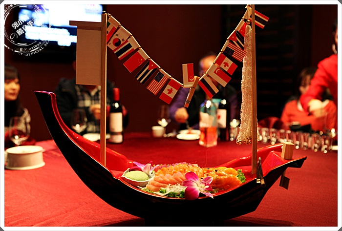坐上桌後第一艘大船就開了進來了,這艘生魚片傳相當的大,看起來也相當的氣派。 |