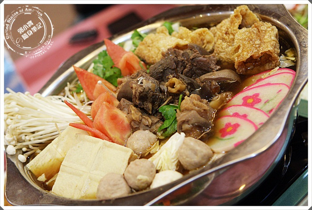 羊肉爐的湯頭喝起來就沒有那麼濃郁了,感覺像醬油膏湯下去熬製,又加了大量的蔬菜與火鍋料,