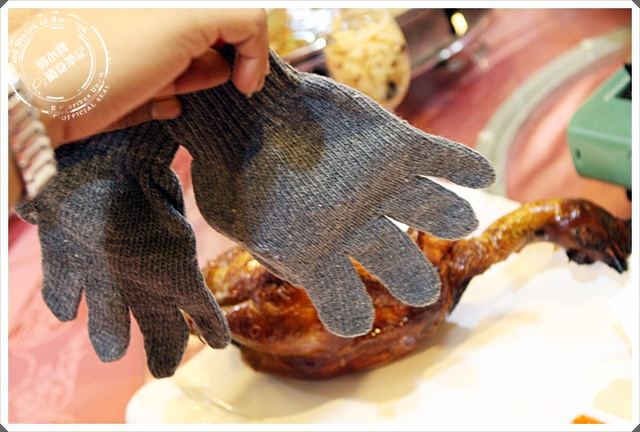 就讓年輕的同事小郁來示範怎麼手扒雞吧,話說小郁都生兩個了,還是很活潑,身材保持得很好唷!!