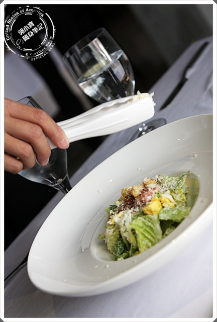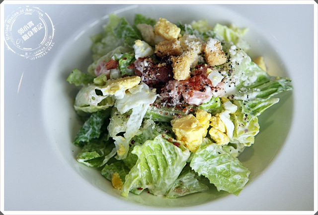 我點了最保險的凱薩沙拉,服務人員在旁邊輕輕灑下的乳酪粉,一路吃下來我就有慢慢感覺到,