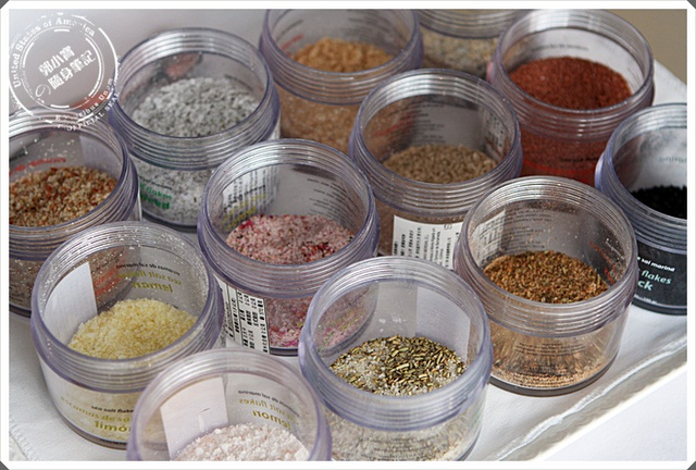 再上主餐前會先介紹這些各地精選的海鹽,然後再選三種來搭配你的主餐,如果你覺得眼花撩亂,