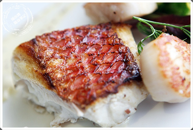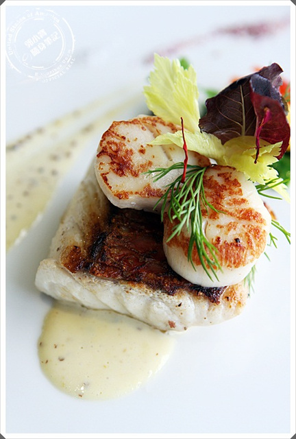 爐烤真赤鯛‧帝王干貝佐香芥奶油及刺山柑花蕾橄欖醬 1250元 |