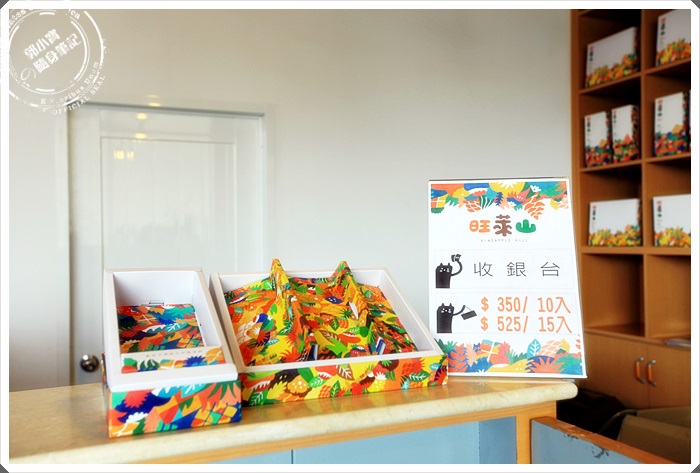 旺萊山鳳梨酥觀光工廠的櫃檯還滿大的,擺滿了自家的產品盒。 |