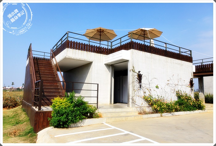 主建築物旁邊有個露台可以觀賞整片鳳梨田,下面是廁所,打掃的非常的乾淨,