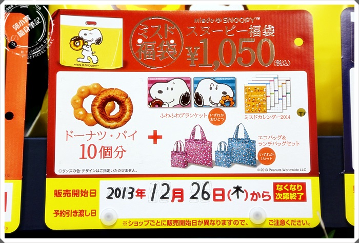 ‧您所在的位置: 郭小寶‧這就是青春 > 郭小寶全省食況轉播 > 日本美食景點輕旅行.桃太郎行程精選 > 『限定品情報。連鎖甜食』Mister Donut的聖誕限定版 史努比商品福袋