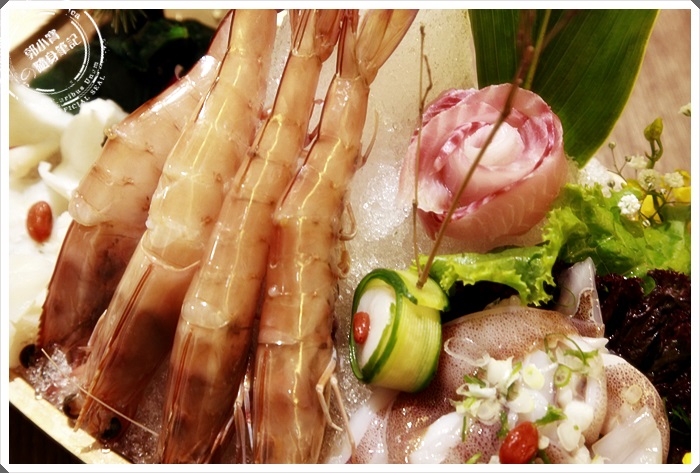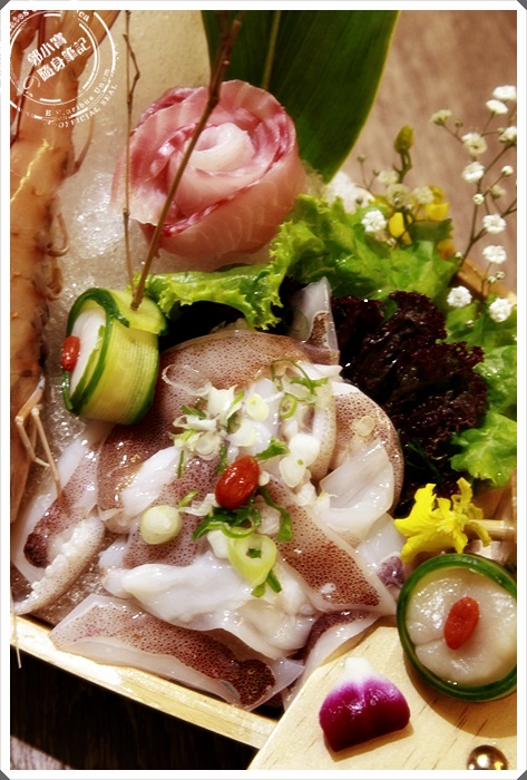 加上新鮮的花枝跟魷魚,還有魚肉片跟生魚片等急的干貝,真的是大呼過癮。 |