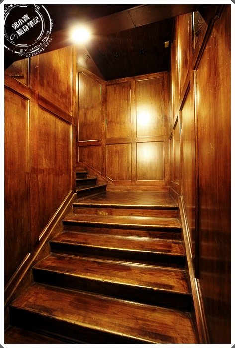 原木裝潢的樓梯踩起來特別有復古感,這似乎是以前就存在的裝潢。 |