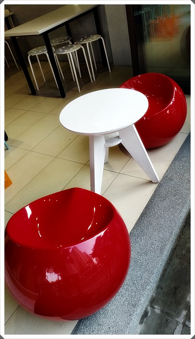 門口放了可愛的桌椅,我深深的懷疑真的有人會坐這邊嗎? |