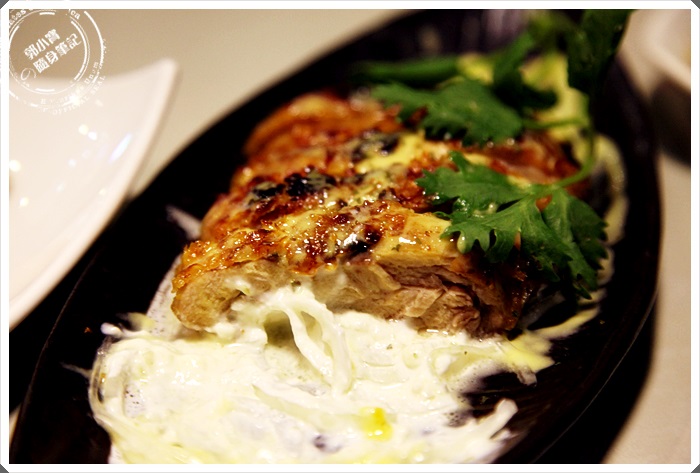 烤的火侯拿捏還不錯,外皮有焦香氣,有呈現出豬頰肉的特色,口感極佳,但是如果再切厚一點的話口感會更棒。 |