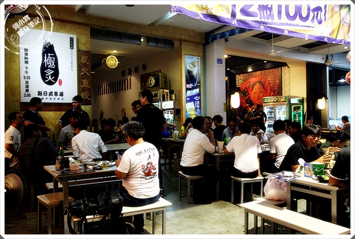 一進入極炙新日式串場就發現裡面根本就是高朋滿座,滿滿滿的滿出來了,真的超誇張的,不只有公司團體下班聚會以外,很多家庭客也都會來這邊用餐,整間店的氣氛還滿不錯的,確實很有日式酒場的氛圍,挑高的大廳坐起來一點壓迫感都沒有。 |