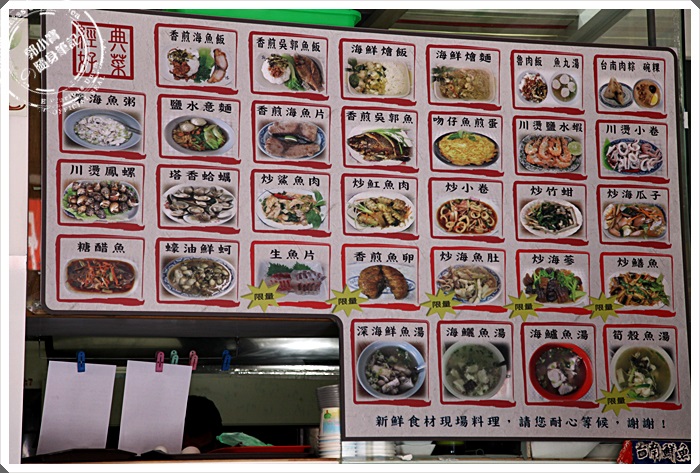 只是規模小了一點,當天要點很多海鮮熱炒的時候,男老板也出來跟我們說抱歉,因為中午很多東西都已經賣光了,真的是相當的誇張,後來才知道老板的魚貨都是親自下去台南安平港挑選新鮮剛入港的漁船,親手挑選一些難得一見的大魚種,然後在連夜開車回桃園,真的有夠殺的!!! |
