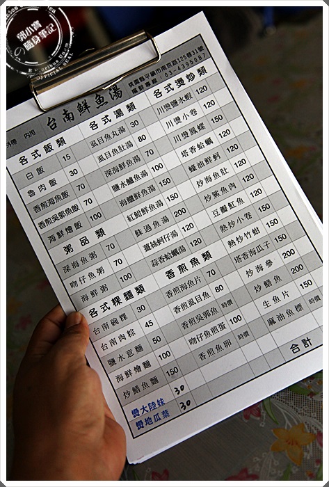 當時我們要離開的時候大約4點左右,店內還有一些客人在用餐,真的生意很好,所以要吃的人真的要搶快,他們家的海鮮真的是沒話說,而且CP值真的是高到一個不行,幾乎沒有一道菜是超過200圓的,對於這邊的消費比起來真的很貼心,難怪台南鮮魚湯會聚集那麼多在這邊工作的異鄉都市南部人,被這些人喻為隱藏版小吃,要離開的時候我朋友還問我,我看你拍的這樣認真,該不是要拿去寫部落格吧??