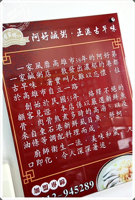 ‧您所在的位置: 郭小寶‧這就是青春 > 郭小寶全省食況轉播 > 日本美食景點輕旅行.桃太郎行程精選 > 『食記美食。高雄鳳山』阿好鹹粥鳳山店 早餐三頓好選擇!