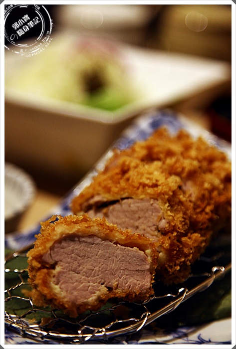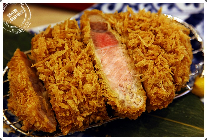 豬排上桌的時候確實讓我驚呼連連,因為成現出粉紅色的顏色真的太漂亮了,可以清楚的看到那分佈均勻的油花,而且每一塊的厚度都將近是3公分的厚切規格,一口咬下真的是肉汁四溢,加上麵衣炸的酥脆,咀嚼中可以感受到這塊肉的彈牙與油脂的鮮甜。