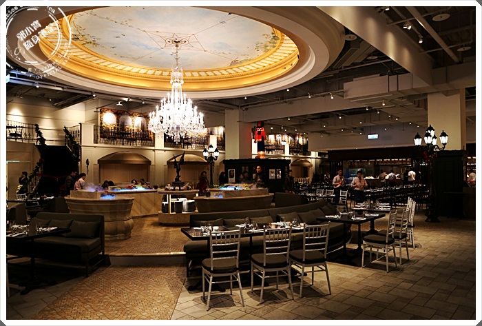 第一眼看到品花苑的感覺就是也太豪華了,有如來到義大利般的用餐空間,正中央還有圓頂造型,整個用餐區也不像平常的吃到飽餐廳都是順序排列的坐法,座位區的位子依照人數不同都有不同的座位區,彷彿就是坐在義大利的街頭般的悠閒。 |