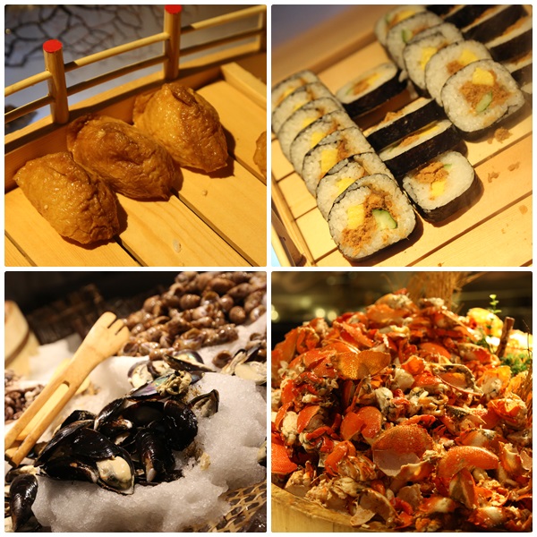 我想自助餐廳重點的日本料理區也是大家爭先恐後的一個地區,幾乎自助餐廳絕對不會脫離海鮮生魚片等高價食材,豆皮壽司相當的美味,看熱門的程度就知道了,這邊也有現做的手捲,但是因為要保留戰力到其他區域,所以就沒有特別拍手捲了,除了壽司類的部分,當然其他海鮮貝類也不能少。 |