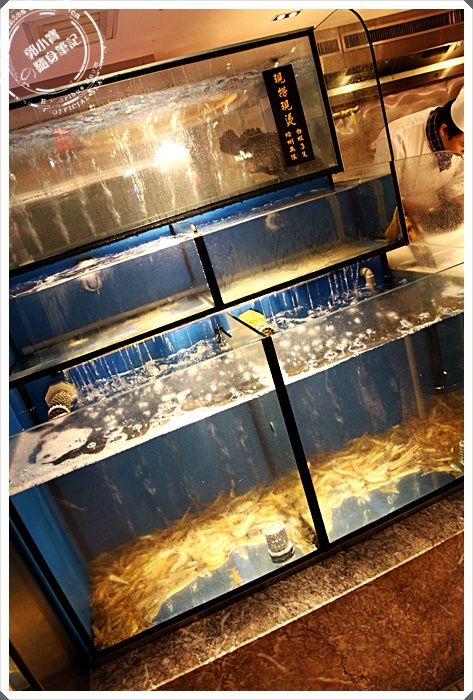 旁邊有一個階梯式的水族箱,據說本來是要給一家大小的親子互動的,撈活蝦現煮,但是因為幾乎全部的客人都不想沾濕手,所以變成了水族箱,詢問了一下工作人員後,他們表示其實並不會把裡面的死蝦撈起來烹煮,內場還是使用新鮮的活蝦做料理,其實這水族箱應該徹掉會比較好,避免消費者擔心會用水族箱的死蝦來烹煮。 |