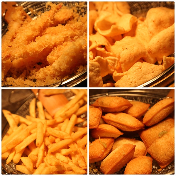 這一區幾乎都是日式的炸物,當然最熱門的就是炸蝦了,可以親眼看到師傅一條條完整的蝦子裹粉下去詐,熱呼呼上鍋馬上就被搶光了,除了炸蝦以外還有很多相當熱門的炸物。 |