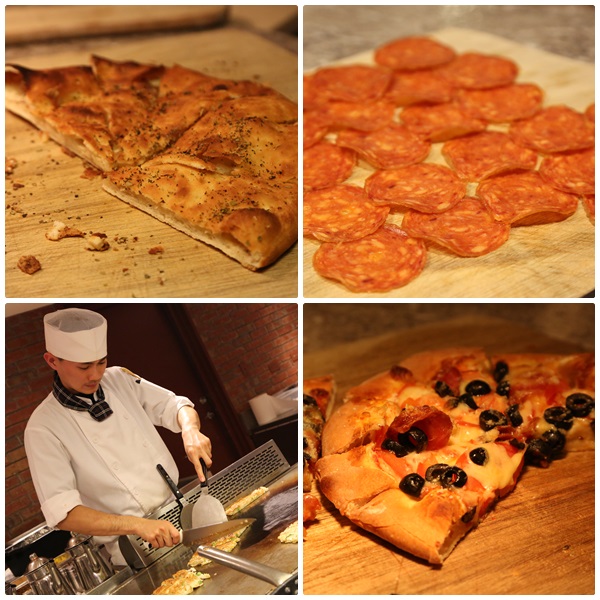 鐵板區的另一邊就是義式餐點了,除了有相當熱門的現烤披薩以外,還有現煮的義大利麵,披薩的部分都是屬於薄皮披薩,我個人比較偏愛厚皮披薩,所以我就沒有夾了。 |