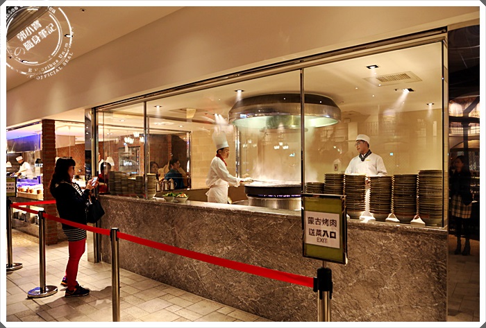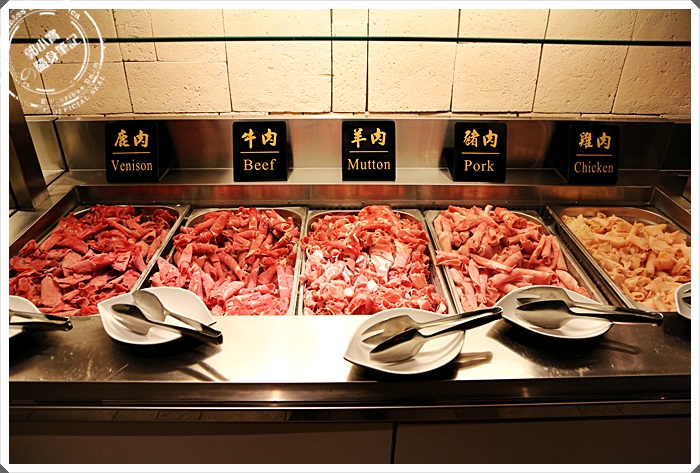 蒙古烤肉區旁邊就有各類的肉品,從牛肉到羊肉、豬肉、雞肉還有鹿肉通通都有,我個人喜歡每種肉都給它夾上一點,看看有沒有辦法一口吃下有金庸小說裡面提到的小羔臀肉般的美味,五種肉混再一起的美妙滋味,夾完了肉品後再夾蔬菜,全部都夾到碗裡面後就可以送到老師傅的送菜口,過沒多久就一碗香噴噴的蒙古烤肉出爐了,說真的相當的好吃,肉汁滿碗啊!!!! |