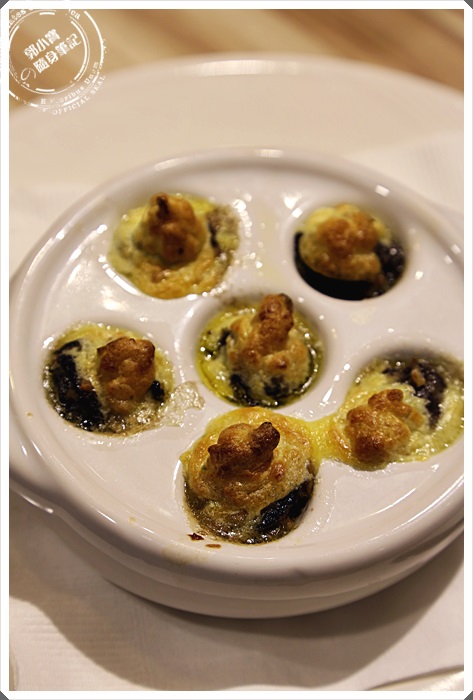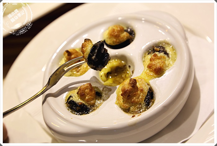 可能是我不懂法國菜,但是我對這道也覺得滿普通的,起司放的還滿多的,但是吃起來卻有那麼一點點的油,田螺的口感軟趴趴的,我個人覺得不是我喜歡的味道跟口感。 |