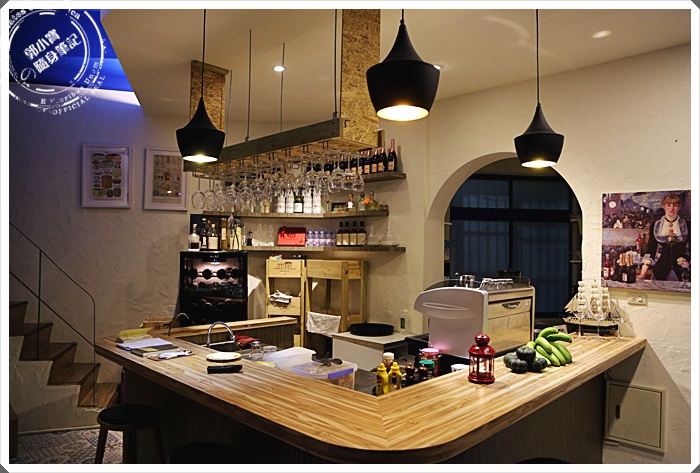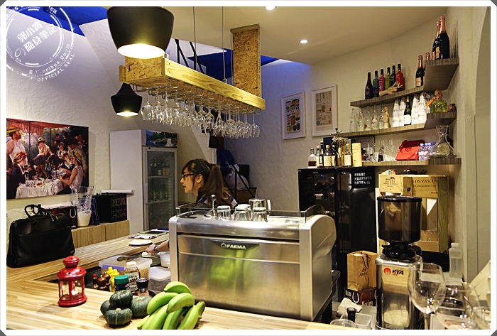 一進入店裡就可以看到木製的吧檯,吧檯上也可以用餐,當天晚上連吧檯幾乎也都坐滿了人,加上暖色系的燈光有點小希臘風格。 |