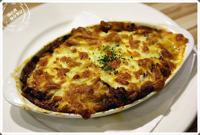 我是被菜單上的一層平麵一層起司所吸引住的,所以上桌的時候我就忍不住的趕快挖了一口趁熱騰騰的時候入口,一挖起來就可以看到牽絲的濃郁起司,入口除了滿口的起司以外還有肉醬的味道,算是一道相當重口味的麵品,一個人吃這一盅會感覺有點膩口,可以兩個人交換著吃就會剛剛好XD |