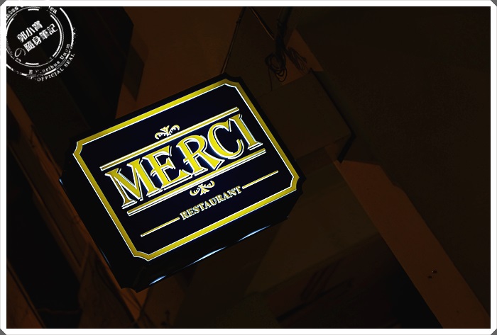 這天好友小烏龜一直約著我們一群好友要來這一家新開的餐廳,位於一個滿不起眼的位子,就在雄女對面的英雄路上,一排老房子的中間就看到了通火通明的餐廳,招牌沒有很大,但是人卻相當的多,取名為MERCI梅西,看店的外表還滿不錯的,但是一開始看起來還真猜不透它是甚麼樣的料理。 |