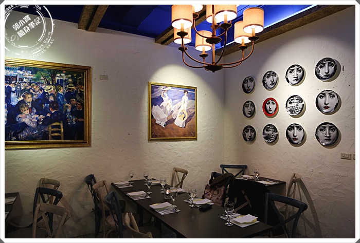 一樓的座位區滿有情調的,長短桌都有,可以依照客人的來客數做調整,個人覺得桌子有點太低了,因為後來喝湯的時候幾乎都要彎下腰去喝湯,如果再高一點點的話會比較剛好,牆上掛了很多畫作,彷彿就像是來到歐洲般的風情。 |