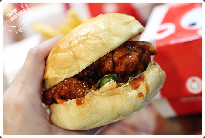 一整隻去骨炸雞腿果粉下去炸完後再淋上醬汁夾在雙層麵包裡,漢堡麵包屬於比較台式的軟式麵包,也因為這樣可以吸附大量的酸甜醬汁,一口咬下確實相當的過癮,可以撕咬到完整的雞肉快感!! |