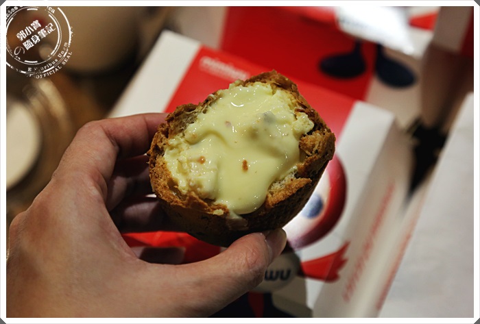 超令人難忘的爆漿泡芙,外皮是比較酥脆的麵皮,裡面的內餡一口咬下真的爆口濃郁十足,一吃就停不下來。 |