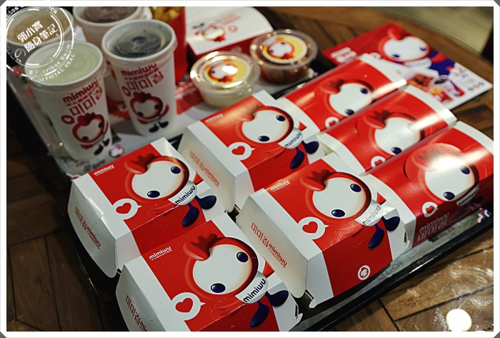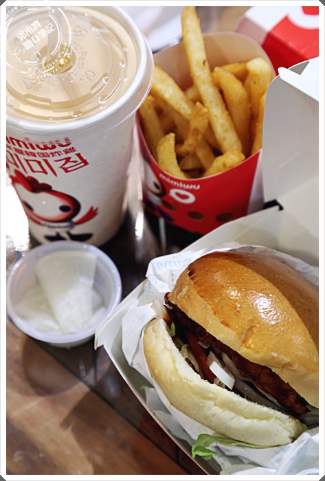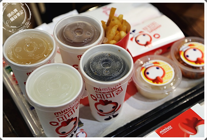 排了20分鐘的隊伍後才終於輪到我們,仔細看了一下招牌其實米米屋賣的品項根本就是速食店的規模了阿,哪是韓式炸雞店而已,根本就是韓國的麥當勞了,從漢堡到點心、炸雞、飲料通通都有,就姑且把她當作韓國來的速食店吧,後來上網一看才知道原來米米屋是道地的台灣品牌,主要都是遠赴韓國去試了許多的口味,學了許多韓國道地的醬料回來,就在南紡夢時代開了第一家韓國型態的速食店。 |